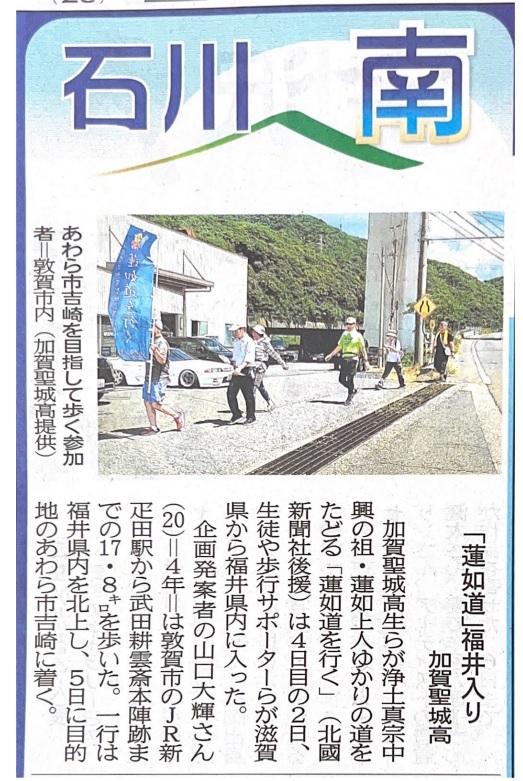 「蓮如道を行く!」昨日の様子が新聞に掲載されました