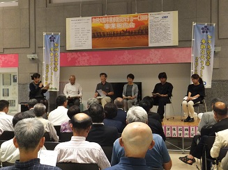 9月19日(木)、大聖寺八間道のかが交流プラザさくらにおいて、「加州大聖寺藩参勤交代うぉーく2019」事業報告会を開催しました。会場には、本校生徒・職員をはじめ85人の皆様にご参加いただきました。DVDでうぉーくをふりかえりながら、事業の成果と課題についてパネルディスカッションでお話しいただきました。