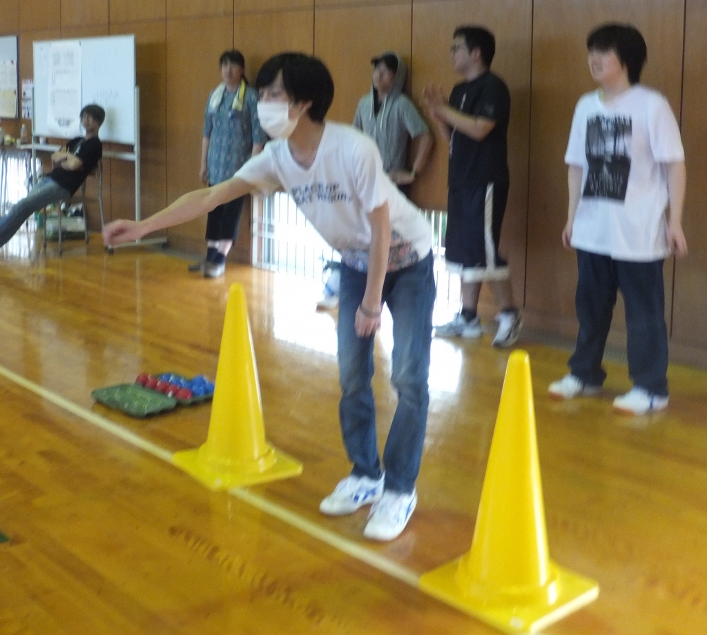 最初はバドミントンのダブルス、次にボッチャを行い、交流を深めました。