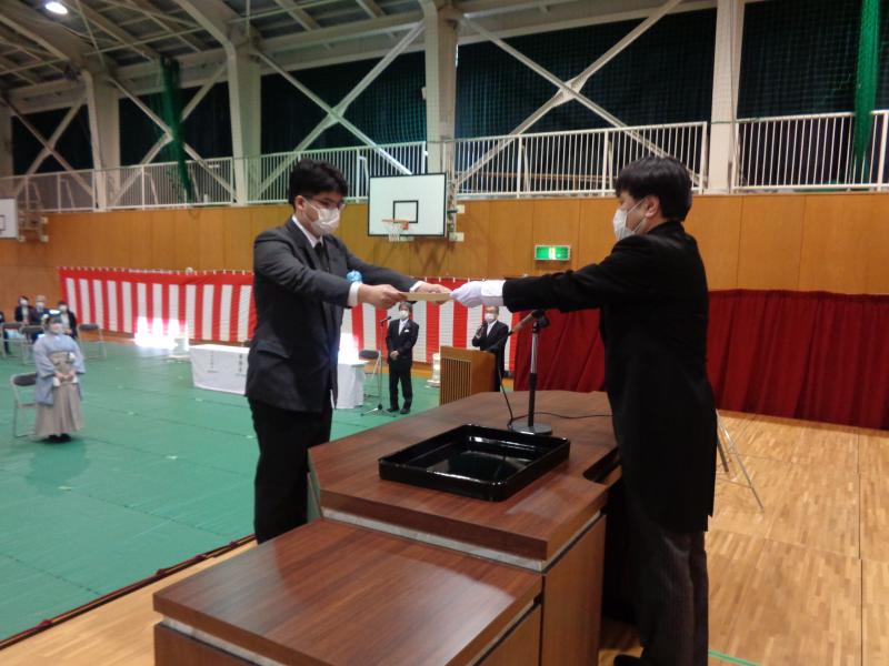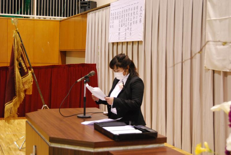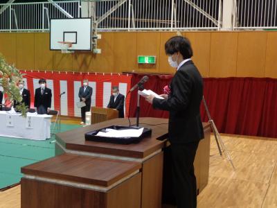 今年は、新型コロナウイルスの影響で、来賓の方々や在校生の少ない式でしたが、佐々木和彦教育振興会会長の