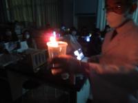 「夜桜ハイク」から戻り、生徒会長の進行で、「対面式」です。在校生が新入生に歓迎の言葉を述べたのに続き、新入生が自己紹介を行い、会場は温かい拍手に包まれました。
