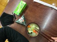 お話の後は、なめこ汁とおにぎりを食べました。