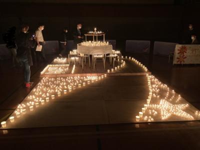 ひとつひとつ点火し、体育館の電灯を消し