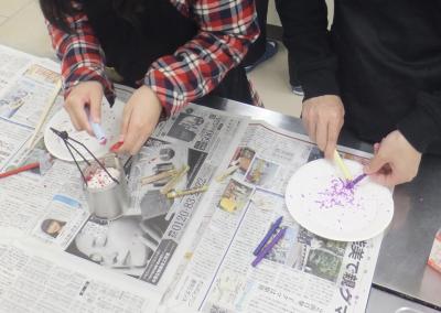生徒はそれぞれ自分のろうそくを手作りしました。