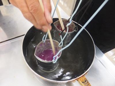 湯煎(ゆせん)して溶かしていきます。