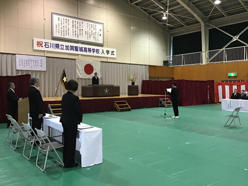 い参加人数での式でしたが、南誠治校長からの「健康で、多くの出会い、学び、感動を経験し、ステップアップしながら学校生活を送ってほしい」との言葉と、
