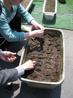 今日は生徒に手伝ってもらい、種まきやら、苗植えを行いました。