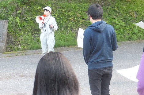 大聖寺城址は、16世紀後半の山城としての特徴をはっきりと残す貴重な歴史遺産でもあります。今回は加賀市文化振興課主査の戸根比呂子さんに、大聖寺城址の説明をしていただきながら、じっくりと学習することができました。生徒たちは説明を聞きながら、興味津々の様子で、本丸・二の丸などに残る曲輪(くるわ)・土塁・虎口(こぐち)の形跡を見学していました。