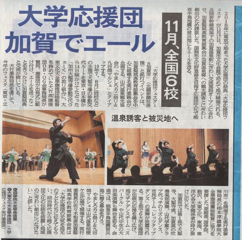 加賀聖城高校教育振興会が中心となって運営する「大学應援團フェスタ」が11月17日(日)に開催されることになりました。