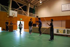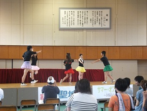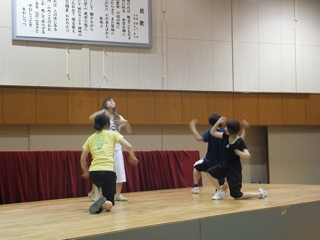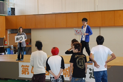 次に、生徒会主催による「聖城クイズ大会」をしました。聖城高校にまつわる○×クイズです。敗者復活戦も行われ、たいへん盛り上がりました。その後、教員チームによる「恋するフォーチューンクッキー」のダンス発表がありました。