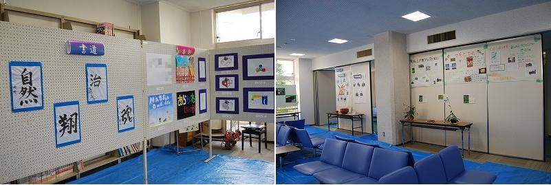 ふれあいホールでは、生徒や美術聴講生の方の作品や錦城山プロジェクトのパネルが展示されました。