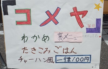 4年生「おにぎり福ちゃん」・・・よりどりみどり、おにぎりの味が6種類もありました。高菜としゃけをいただきました。いい塩加減でした。