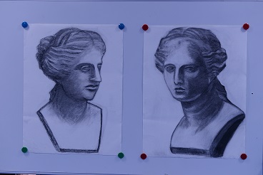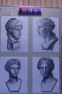 こちらは、ふれあいホールに展示された生徒・聴講生による美術作品です。