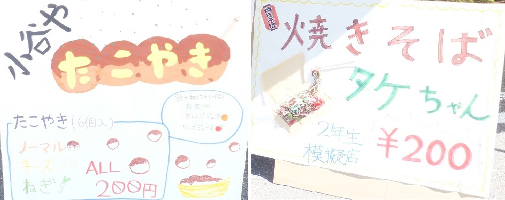 1年生「ぺロングやきそば」 2年生「たこ20」 3年生「焼きフランク」 4年生「やきとり半蔵」