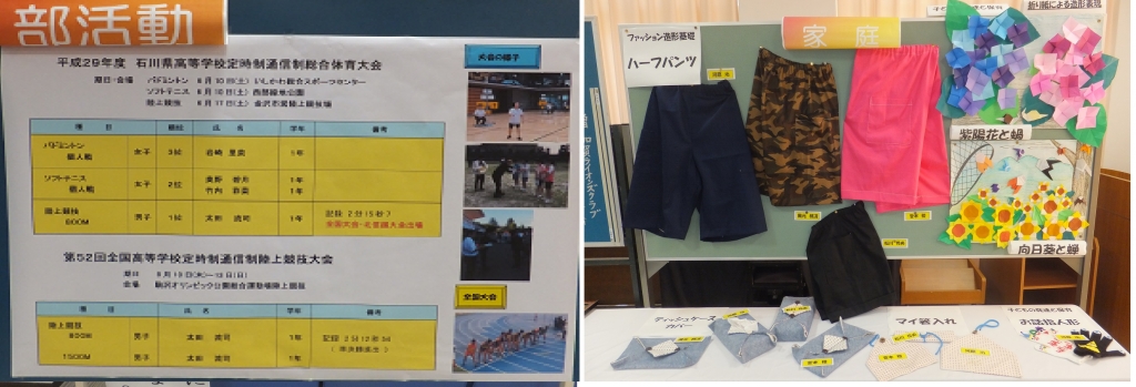 また、聖城ふれあいホールで生徒作品の発表、錦城山プロジェクトの紙上発表、パネル展示を行いました。