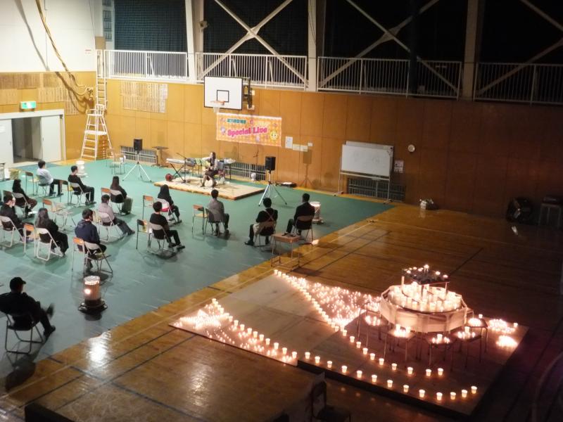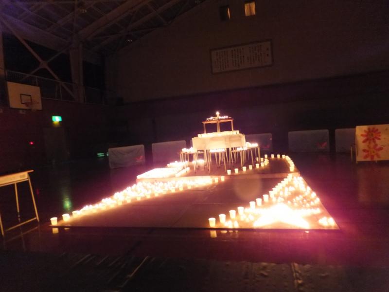 コロナに負けない、希望の灯というテーマでろうそくアートをつくりました。