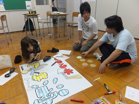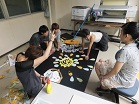 生徒一丸となってドミノ作りに取り組みました。歩いた地域の名物をドミノで表現し、
