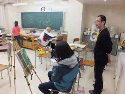 回2コマの授業でデッサンや油絵を熱心に取り組