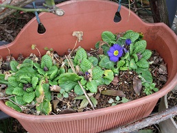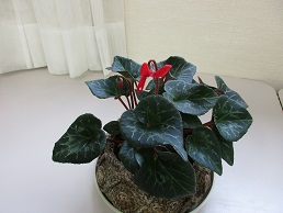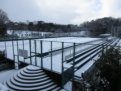 シクラメンが咲きましたが、テニスコートは冬に逆戻りです。