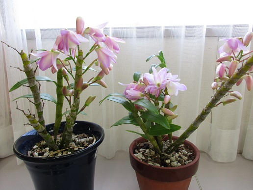 デンドロ・マキが満開になりました。2月は「雅」が鮮やかな色彩で開きましたが、ちょっとお姉さんの色ですかね。