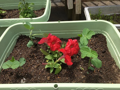 枝豆にはコンパニオンプランツとしてペチュニアも植えました