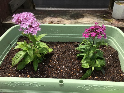 冬を越したグラジオラスがとても元気に育ったので、株分けしました。アサガオも沢山芽を出しています。