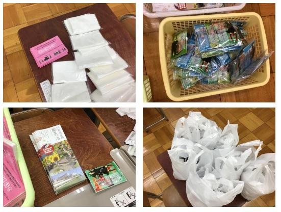 「蓮如道を行く!」まであと2週間です。 投稿日時 : 2023/07/13 ICT支援員 7月30日(日)スタートの「蓮如道を行く!」にむけて、無料配布グッズの袋詰めを行いました。 記念ティッシュ・入浴剤・加賀市の観光マップ3点を全校生徒で協力して袋詰めしました。
