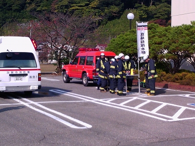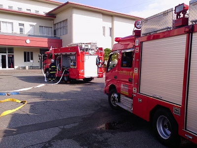 消防訓練 投稿日時 : 2014/11/07 2年 11月7日(金)10時より本校校舎を使った、加賀市消防署員合同の秋季火災防御訓練が実施されました。この訓練には、加賀市内の大聖寺、片山津、山代、山中各分署の署員並びに所属消防車、救急車の合計7台が参加しました。校内での火災消火やけが人の救急訓練などが行われ、実際の消防に近い内容でした。 最後に本校の池田校長の挨拶と加賀市消防本部の山下消防長の講評で終了しました。 Tweet