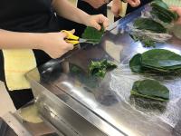 大聖寺食生活改善推進委員4名をお迎えして、全校生徒で柿の葉寿司づくりに挑戦しました。