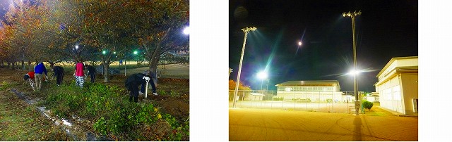 やっと芋掘りが出来ました。5月下旬に植えたサツマイモです。10月は行事が多く、授業が欠けないよう配慮したために、今日になってしまいました。もうかなり寒くなり、明日からは雨とのこと。満月のなか、夜の芋掘りとなりました。生徒は慣れているのか、うまく掘ります。大変に盛況でした。夜の芋掘りも捨てたものではありません。夜学だから出来ることです。今年の盛夏に全く水もやらず、草も刈らずの状態でしたが、大きなサツマイモも多く収穫できました。ここはサツマイモには最適地なのかもしれません。早速、家庭科の授業で蒸かして、食べたそうです。