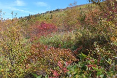 草紅葉、ウラシマツツジとてもきれいな朱、クロマメ(ブルーベリーの仲間)も色づきました。