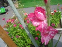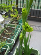 これはプリンスメロンです。 赤いグラジオラスが隣で咲いてくれました。