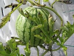 これは漬け物メロン用でしょうか・・・・・トホホ。ミニスイカは受粉して実がなり30日を越えたのでそろそろ食べ頃でしょう(マニュアル本)。 来週通室生と共に試食会の予定です。