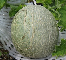 このメロンは網目模様もしっかり入り、8月第2週が食べ頃のはずです。(マニュアル本)