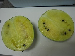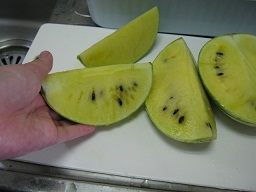 でも綺麗な黄色のスイカです! 切った感じも固くなく良い感じです!わくわく