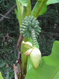 やすらぎ教室の前にバナナの木があります。冬になると枯れてしまうのですが、夏にはご覧のような立派な「バナナ」の木になります。実は例年落ちてしまいますが、今年はどうなるのでしょうか?
