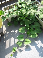 さつまいもの苗は通室生が持ってきてくれたものです。床にはい出てきて、土を探しています。バジルは通室生が種から育ててくれました。