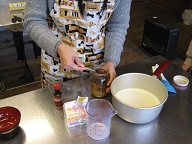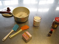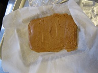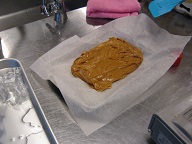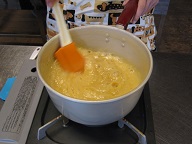 材料を調合し、加熱攪拌して、トローリしてきたら頃合いを見極めて(これが難しい)、バットに取り出し、氷で冷やす。