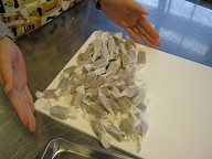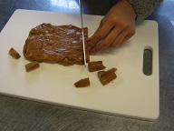 少し固まったら包丁でカット。あとはクッキングペーパでクルクル。