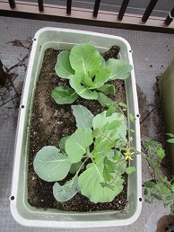 プランターの野菜も大きくなってきました。カボチャは花が咲くでしょうか楽しみです。キャベツは巻がちょっとだけ。こうご期待。