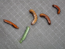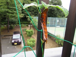 丸イモのツルに幼虫がついてました。葉っぱが全滅状態で気がつきました。・・・蛾かな?