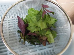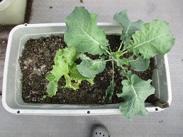 プランターに植えた秋野菜が大きくなってました。