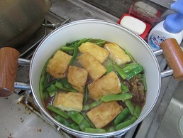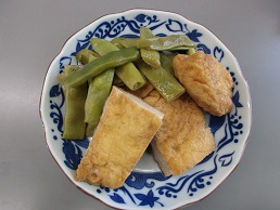 厚揚げとインゲンの煮物。家庭の味ですね。