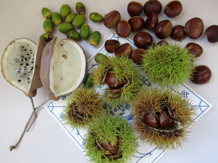 公園を散歩すると秋の恵みがいっぱいです。クリ拾いに来ませんか?アケビは開いたのは小鳥に食べられてましたが、これからのもたくさん見付けましたよ。一緒に散歩しませんか。
