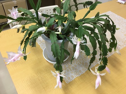 もう何年も前から教室に”住んでいる”、クリスマスカクタスの『ホワイトベル』が、今年も今月に入ったら蕾が膨らみ始め、一気に開花しています。本当に、毎年クリスマスになると律義に花を開くので感心しています!