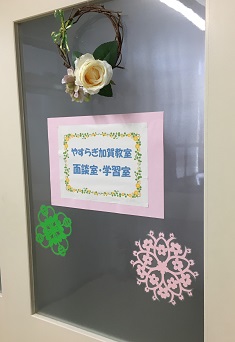 教室のドアには、昨年末に取り組んでいた正月飾りを掲げました。