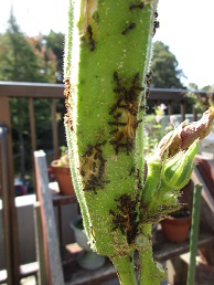 オクラの種用に今朝はアリが群がっています。イヤハヤ。