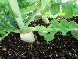 大根は毎日少しづつ大きくなっておりますね。白い、でもまっすぐ伸びないのは何故でしょうか?秘訣があるのかな。