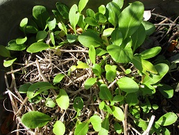 大根が毎日伸びてきます。嬉しいね。菜っ葉も出てきましたよ。チンゲンツァイかな?