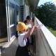 消化器の使い方を習い、実際に体験してみました。